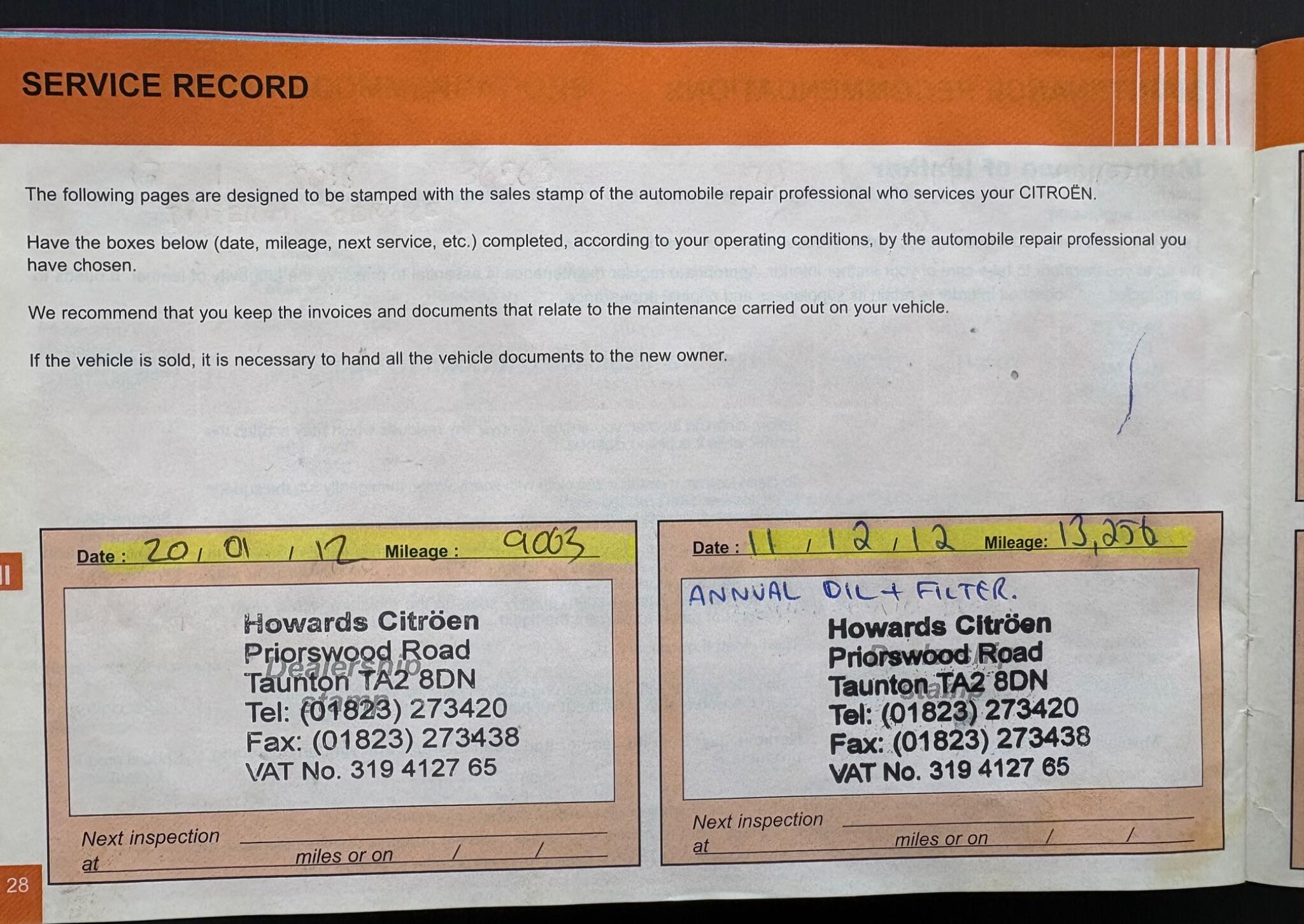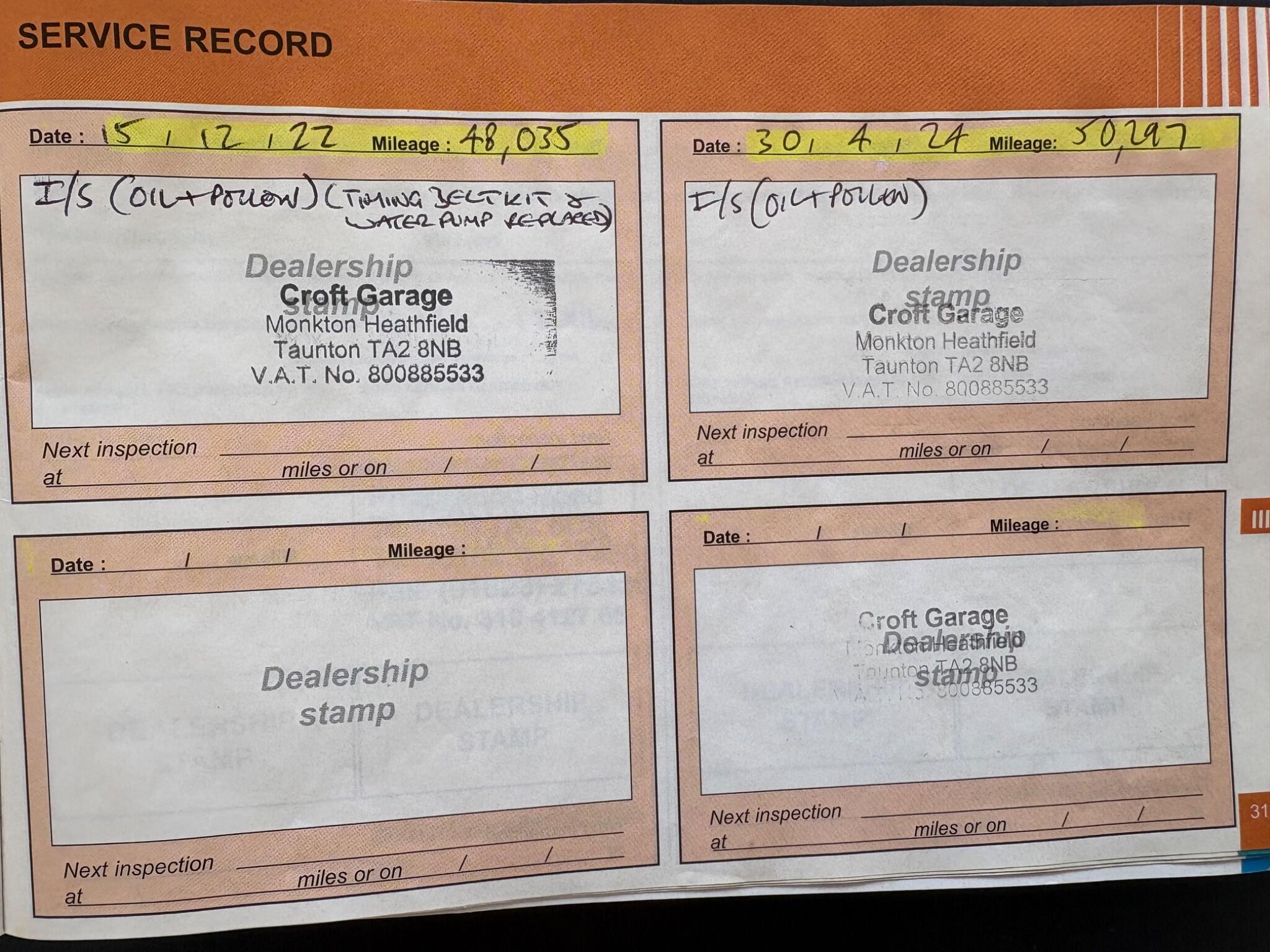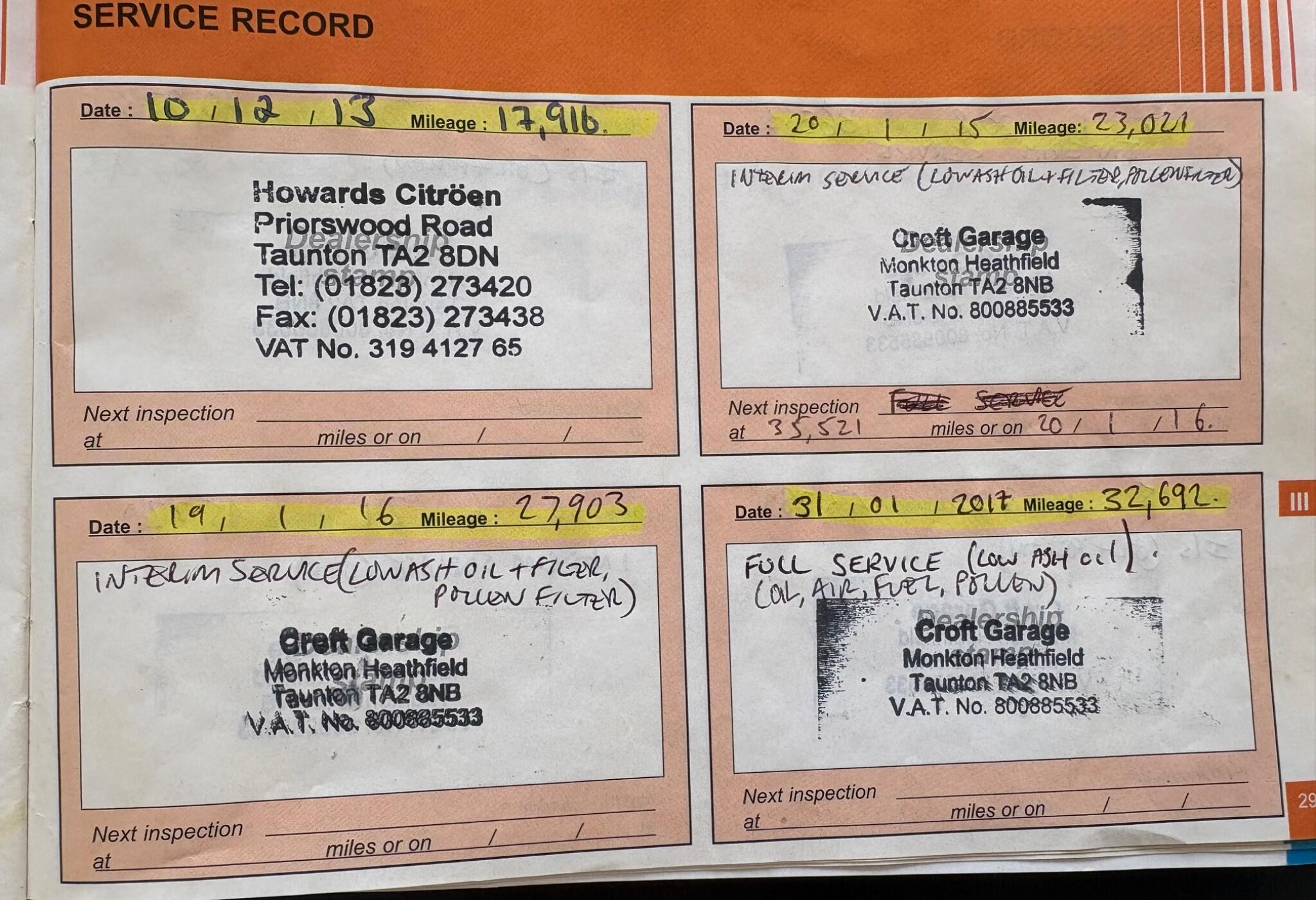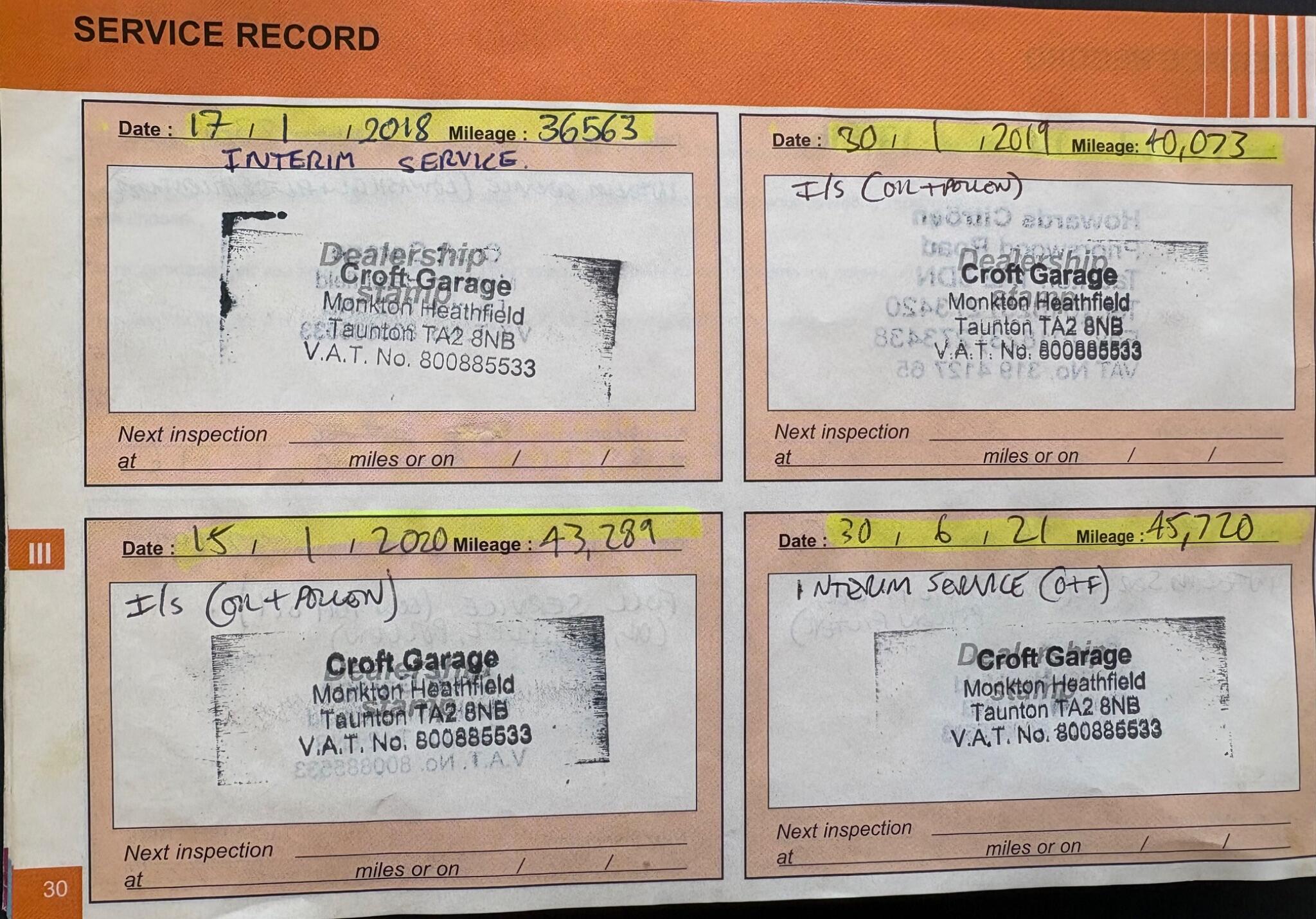 New MOT/Service, Full History