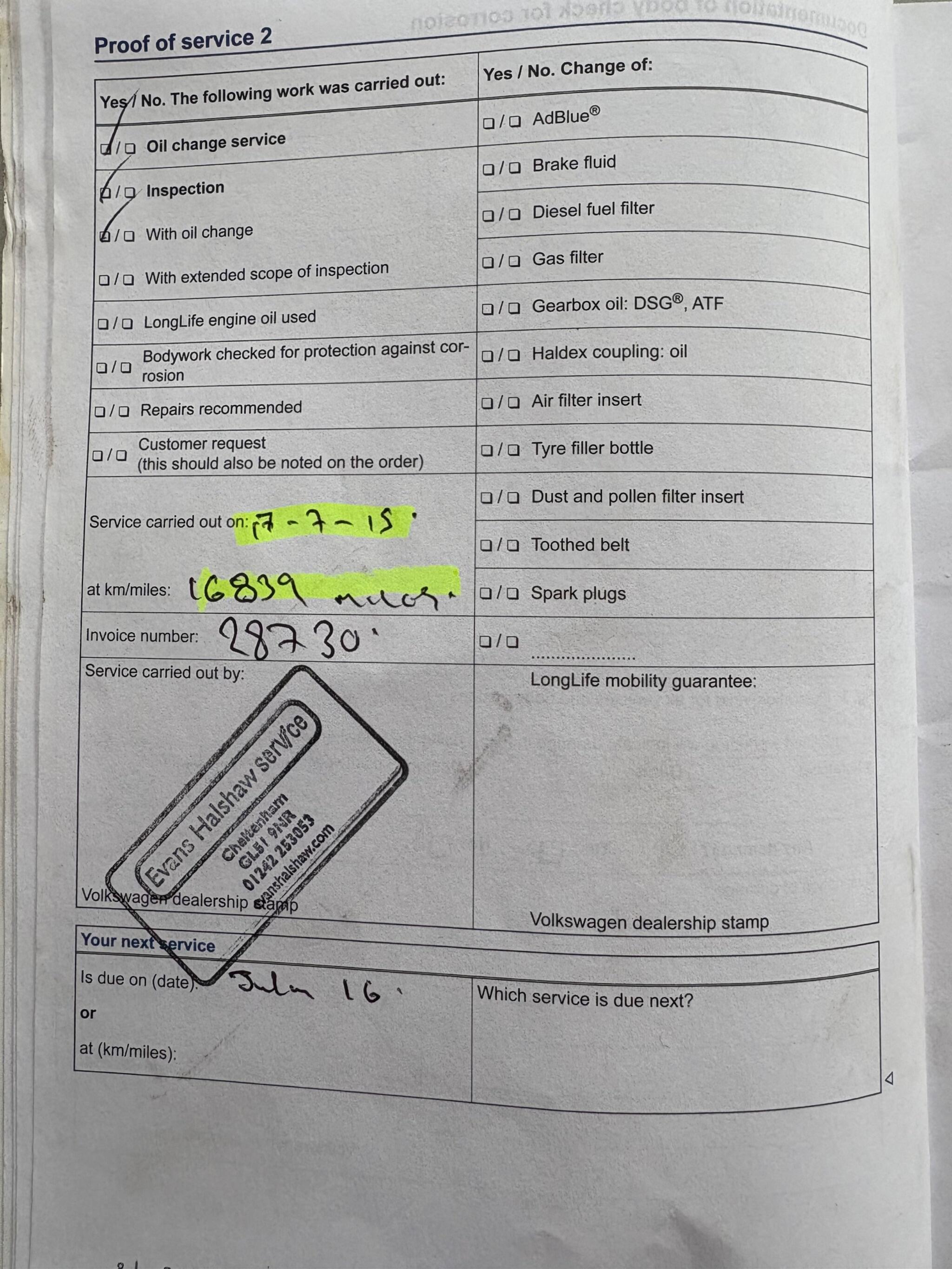 New MOT & Service